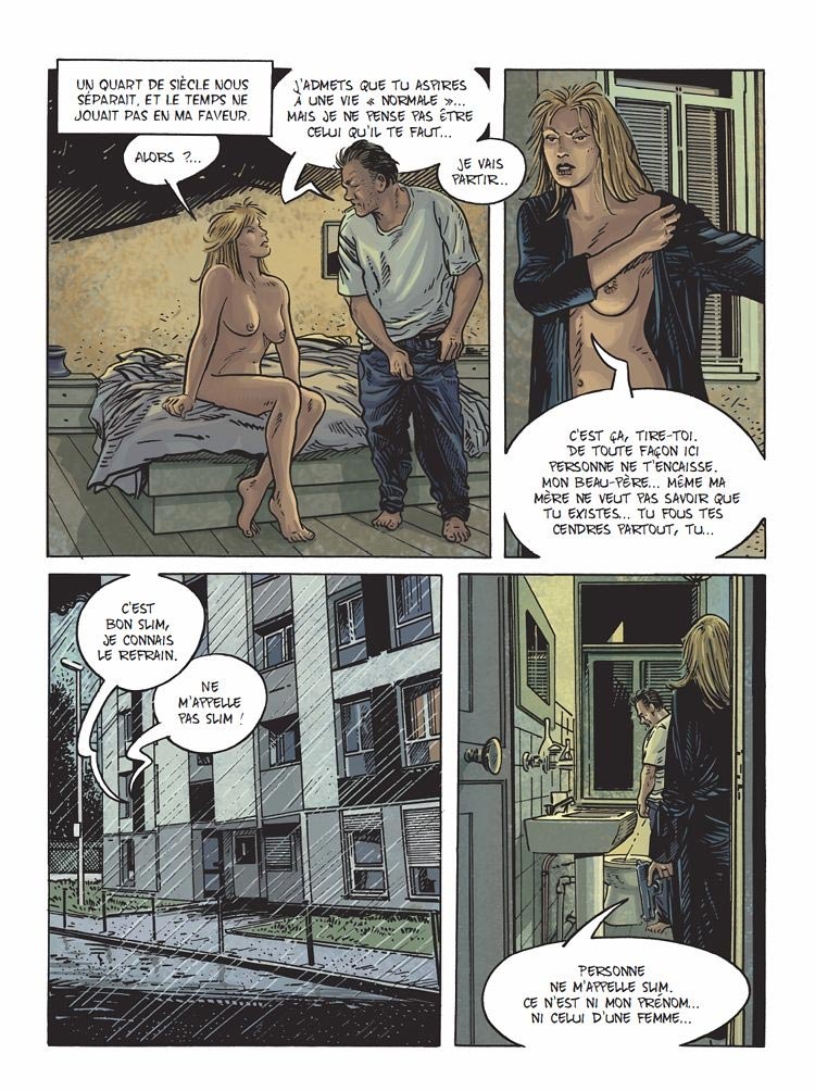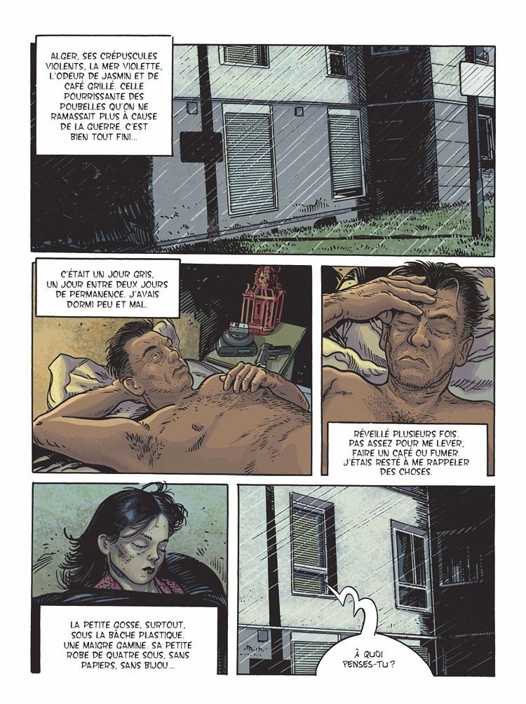 Adapté du roman éponyme de l'ancien flic reconverti écrivain Hugues Pagan (La Mort Dans Une Voiture Solitaire, L'Eau Du Bocal...), Dernière Station Avant L'Autoroute, raconte la lente descente aux enfers d'un flic vieillissant hanté par le souvenir d'une gamine morte dans un terrible accident ferroviaire. Les textes crus de Didier Daeninckx, qui laissent une large place à une narration descriptive clinique, s'accordent merveilleusement avec le dessin âcre de Mako (alias Lionel Makowski) qui restitue l'atmosphère glauque et pesante indispensable à l'histoire avec grand talent. Vous suivrez pas à pas ce flic de nuit dont le quotidien est de faire connaissance avec des macchabées, prostituée à la cervelle explosée ou homme politique suicidé. Les nuits sans sommeil, l'alcool, le sexe sans passion avec une femme ou deux, aussi perdues que lui, un supérieur qui le tient dans son collimateur : l'affaire semble bien mal engagée. Un roman graphique très réussi qui mérite sans aucun doute le détour.