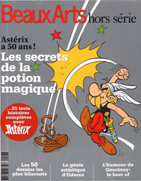 De façon assez surprenante, ce spécial du magazine Beaux Arts est le seul hors-série à célébrer les 50 ans du phénomène Astérix. Il est ici proposé d'analyser en détail l'alchimie du duo génial (Goscinny et Uderzo) à l'origine de la création de ce qui est probablement devenu la BD la plus populaire au monde, l'art d'Uderzo, l'un des plus grands maîtres vivants du 9e art, la force comique des aventures du petit gaulois et les ingrédients qui en font un mythe universel. Des détails sur le devenir d'Astérix, dont les futures aventures pourraient être confiées aux collaborateur d'Albert Uderzo pour le dessin et peut-être à laurent Gerra pour le scénario (!). La visite dans l'intimité artistique d'Uderzo, agrémentée d'une interview avec ce dernier, permet de prendre toute la mesure du génie d'un dessinateur autodidacte. L'équipe de ce hors-série à réalisé un travail copieux et bien documenté, faisant notamment un inventaire précis des gimmicks (les baffes aux romains, les vedettes caricaturées, les citations détournées, les pirates...) qui font le succès d'une série phare.