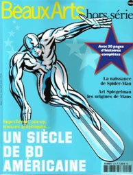 Personnage mythique de la bd américaine s'il en est, le Silver Surfer (Surfer d'Argent) de Stan Lee et Jack Kirby a été choisi pour figurer sur la couverture de ce superbe et passionnant hors-série du magazine Beaux Arts consacré à la bande dessinée américaine, sous toutes ses coutures. En plus d'une exploration pointue doublée d'analyses de spécialistes, les lecteurs pourront découvrir 50 pages d'histoires complètes, dont celle des célébrissimes origines de Spider-Man, dessinées par le brillant Steve Ditko et scénarisées par le tout-puissant Stan Lee (encore lui !). Le grand gourou des "super-accros-aux-super-héros" de la firme Marvel a d'ailleurs droit à son portrait et ses créations à près de 30 pages ! Les autres stars de cette somme copieuse sont Milton Caniff, les strips des studios Disney (par les maîtres Carl Barks, Al Taliaferro ou Floyd Gottfredson), Prince Valiant (par Harold Foster), mais point de Mandrake ou Flash Gordon ! Le tour d'horizon se poursuit cependant avec 16 pages dédiées à la bd US Underground (Crumb, Corben, Peter Bagge), 18 à la bd érotique (les pin-ups de Jack Cole et les parodies porno anonymes de Mickey), l'histoire du magazine Mad et celle des romans graphiques (avec un dossier sur Art Spiegelman). Beaux Arts conclut avec un top 40 de la bd US, remporté par Snoopy et les Peanuts de M. Schulz.