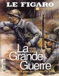 Le quatre-vingt dizième anniversaire de l'armistice de la première guerre mondiale inspire décidément la presse ces temps-ci. Après le Monde, c'est au tour du Figaro de proposer son hors-série sur le sujet. Après une intro de photos pleine page, légendées par des extraits du célèbre ouvrage Paroles De Poilus (ed. Tallandier), on entre dans le vif du sujet avec un panorama, sur trente pages, des grandes dates de cette tragédie humaine. Est ensuite proposé un Atlas des batailles, à la manière du Dessous Des Cartes, célèbre émission de télévision. Le portrait de Foch précède ensuite une galerie des Maréchaux, pères de la victoire : Gallieni, Joffre, Pétain, Fayolle. Sont également retracées les années de guerre du cuirassier Louis Destouches, futur auteur de Voyage Au Bout De La Nuit, sous le pseudonyme de Céline.