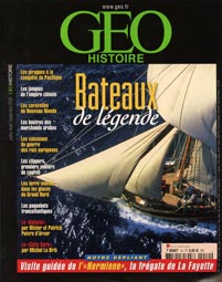 Marins d'eau douce passez votre chemin ! Ce dixième numéro de Géo Histoire nous fait prendre le grand large dans toute sorte d'embarcations : pirogues, mères de tous les navires, barques du lac Titicaca, inspiratrices du Kon Tiki. Jonques chinoises, boutres de l'Océan Indien, vieux grééments d'Afrique, caravelles portugaises, voiliers commerciaux... bateaux pour voyager, commercer ou faire la guerre. Une double page est consacrée aux phares mythiques qui leur évitent de s'échouer. Les grands naufrages sont d'ailleurs commémorés ici par de superbes toiles. Poster en page centrale : l'Hermione, vaisseau de La Fayette, coulé en 1793. qui sera recréé pour 2012. Ce numéro réussi propose également deux gros plans : l'un sur l'épopée des paquebots (France, Queen Mary...) et l'autre sur les Chalutiers. Hommages également aux grands navigateurs solitaires dont Alain Colas, Eric Tabarly, Michel Desjoyaux. A noter, en conclusion de la revue, les clichés de la Lune revus et corrigés par le français Olivier De Goursac..
