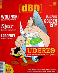 [dBD] ne pouvait certainement pas passer à côté de l'anniversaire d'Astérix. A défaut d'un hors-série sur ce thème, pourtant envisagé, mais repoussé pour cause de retard, ce sont tout de même une jolie couverture (dessin datant des années 1970) et pas moins de 20 pages qui sont dédiées aux auteurs d'Astérix... sans oublier l'édito-hommage forcément trash de Vuillemin. Pour une fois, l'apport d'Albert Uderzo, qui s'exprime dans une formidable interview retraçant ses débuts (étalée sur 13 pages), n'est pas minimisé et les amoureux de son travail seront ravis de voir que les journalistes du magazine l'emmènent vers des terrains moins connus du grand public. C'est à une vraie plongée dans l'Histoire de la bande-dessinée et dans l'Histoire tout court que le grand maître nous convie. Détails étonnants qui nous apprennent par exemple qu'il travailla après la guerre pour un studio d'animation et que ses premiers personnages s'appelaient Flamberge, Arys Buck ou Prince Rollin. Inutile de préciser que le parcours de Goscinny n'est pas oublié. Autres intérêts de la revue, les interviews de Larcenet et Wolinski, pour leur nouvel album respectif.