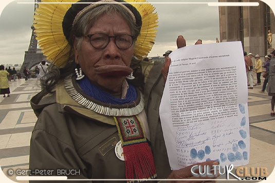 - L’ÉTERNEL COMBAT DE RAONI -« Il est temps que l’on récupère ce qui nous appartient ». Chef des Kayapos, le charismatique Raoni est revenu en Europe francophone pour une ultime tentative de diplomatie, du 3 au 17 mai 2010. « Depuis toujours, j’empêche mon peuple de se battre, mais je suis très préoccupé et très inquiet maintenant », a-t-il déclaré à l’AFP. Car les Kayapos sont connus pour être de très bons guerriers et leur chef se dit prêt à prendre les armes s’il le faut pour empêcher les Blancs de construire ce barrage. « Ceux qui veulent ce barrage vont détruire la nature, explique-t-il. Nous vivons de la chasse et de la pêche. Si la forêt disparaît, nous n'avons plus d'air. Avec ce barrage, les poissons vont disparaître. Notre peuple va mourir. » C’est pourquoi lors de sa tournée européenne, le chef des Kayapos « implore Jacques Chirac et Nicolas Sarkozy afin (qu’ils) empêchent le président brésilien de construire ce barrage sur le Rio Xingú ». Mais si l’ex-président Chirac, qui signe la préface du livre du leader kayapo, Raoni Mémoires D'Un Chef Indien, l’a bel et bien rencontré, aucun signe de l’actuel Président français, malgré des promesses proférées devant des caméras de télévision. Le Brésil était pourtant au cœur de ses préoccupations il n’y a pas si longtemps, notamment en avril dernier, lors de son entretien avec le président Lula à Washington concernant la vente de chasseurs français Rafale, dont il est sorti « confiant »… - UN COUP POLITIQUE -Si 2010 voit le coup d’envoi du projet Belo Monte, c’est surtout une année politique pour le Brésil. En octobre et novembre prochains se dérouleront non seulement l’élection du Président mais aussi celle des députés et des gouverneurs des 27 Etats. Et les questions d’infrastructures hydroélectriques sont un enjeu majeur pour les politiciens. Après la panne d’électricité en novembre 2009, qui a plongé dans le noir un quart du pays (dont Rio et Sao Paulo) pendant trois heures, et celle de 2001 qui a duré plusieurs jours, le Président Lula justifie aisément une politique énergétique agressive. Le Plan national d’énergie (PNE), élaboré en 2006 à l’initiative du gouvernement, prévoit les besoins énergétiques du pays jusqu’en 2030, sur la base d'estimations de la croissance économique et démographique et de l’évolution technologique. Selon ce plan, la demande en électricité devrait augmenter de 4,1% en moyenne par an durant les deux prochaines décennies. Belo Monte est donc présenté comme la solution la plus sensée par le Président brésilien, le barrage devant couvrir 6% des besoins énergétiques du pays d’ici à 2014 (année où le Brésil accueillera la Coupe du monde de football…). Autre argument avancé par Lula : sans ces nouvelles usines hydroélectriques (qui représentent plus de 80% de l’énergie produite par le Brésil), le pays devra se doter d’usines thermiques, bien plus polluantes… et bien plus onéreuses : « chaque mégawatt/heure produit à Belo Monte devrait coûter 78 reais (33 euros), contre 200 reais (85 euros) s’il s’agissait d’une usine thermique », se félicite le Président. - L’EFFICACITÉ DU BARRAGE MISE EN DOUTE -Outre l’aspect écologique, c’est l’efficacité même de Belo Monte qui est remise en cause. Marcelo Furtado, directeur de Greenpeace Brésil, comme beaucoup, reproche à l’usine d’être située à pas moins de 5000 km au sud des utilisateurs potentiels de son courant électrique : « Cela représente une perte considérable d’énergie dans la transmission et multiplie les risques de panne électrique géante. Ce modèle de production, vieux de 30 ans, est dépassé. Le Brésil devrait au contraire multiplier les petites usines de proximité et diversifier ses sources d’énergie avec la biomasse et le solaire. » Pour le président d’Electrobras, Antonio Muniz Lopes, le site a été choisi car le Rio Xingú connaît ses crues en avril-mai, au moment où le débit des cours d’eau du sud est faible. A moins que ce ne soit pour alimenter les mines, bien plus proches du barrage que la majorité des brésiliens. Pour répondre aux besoins croissants d’énergie au Brésil, WWF-Brésil a publié un rapport en 2007 qui propose un moyen de réduire de 40% la demande attendue d’électricité d’ici à 2020. La solution : investir dans l’efficacité énergétique (rendre plus performantes les usines au lieu d’en construire de nouvelles, par exemple). Selon l’organisation, ce type d’approche pourrait faire économiser l’équivalent de 14 Belo Monte et jusqu’à 33 billions de dollars sur la même période. - AMAZONIE : LE POUMON DE LA PLANÈTE