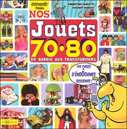 Si vous étiez enfant dans les années 1970 ou 1980, si vos jouets ont été perdus, vendus ou éparpillés aux quatre vents, ce livre illustré est fait pour vous. Vous allez pouvoir redécouvrir avec bonheur les articles fabuleux qui faisaient jadis briller vos pupilles de mille feux. Jouets pour tout âge, de toutes formes et tailles, stars de nos jeunes années, les auteurs les ont tous réunis : Kiki (le Kiki de tous les Kiki), les Playmobil, les Lego, le Télécran, le Rubik's Cube, Big Jim et ses amis, le Goldorak géant, la maison des Schtroumpfs, les figurines Star Wars, Charlotte aux Fraises, les Transformers, mon Petit Poney. Les jeux de société ne sont pas en reste : Cluedo, Destins, Puissance 4, Risk, La Bonne Paye... L'un des auteurs, Sébastien Carletti, travaille dans le e-commerce. On ne s'étonnera donc pas que l'ouvrage soit sponsorisé par Nesquik, dont la mascotte Groquik figure en bonne place sur la couverture...