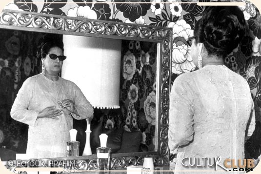 - De Dior à l’armée égyptienne - Oum Kalsoum, c’est aussi l’amour du peuple. Certes, elle avait tout de la diva, comme en témoignent les lunettes Dior en platine, ou la broche en forme de croissant de lune et sertie de 356 diamants… Mais Oum Kalsoum a toujours su rester fidèle à ses origines. N’ayant pas d’enfants, elle redistribuait sa fortune aux pauvres. Elle aimait son pays et voyait grandir en elle le désir de s’impliquer dans l’évolution de la société égyptienne. A la fois militante d’un certain féminisme et de l’unité panarabe, elle mettait sa notoriété au service d’idéaux personnels et publics. Il suffit de voir ce cliché où elle partage un fou rire avec les soldats égyptiens, ou son passeport diplomatique mis sous vitrine, sans oublier la vieille télé qui diffuse des chants patriotiques ou ces coupures de presse recouvrant des murs entiers pour se rendre compte que la diva bénéficiait d’une aura politique qui lui permettait d’endosser un rôle de représentante de son pays. Car la situation géopolitique des années 1950 n’est pas oubliée : une carte géante du Moyen-Orient est même dressée à plat. Que vient-elle montrer dans une exposition consacrée à une star orientale, sinon que son chant et son combat se répercutaient bien au-delà des seules frontières égyptiennes ? - Rossignol ou Pyramide d’éternité ? -La « Sett » (la « Dame »), la « Mère des Arabes », la « Quatrième pyramide », le « Rossignol du Caire », l’ « Astre de l’Orient » : Oum Kalsoum collectionne les surnoms et les superlatifs comme autant de preuves d’amour du monde arabe et du respect de l’occidental pour elle. Un amour qui s’est transformé, au fil des années, 33 ans après que près de 3 millions de personnes (formant un cortège d’environ 1,5 km,) l’aient accompagnée à sa dernière demeure, en un patrimoine inestimable pour les jeunes générations. De jeunes couturiers s’inspirent de ces costumes de scène, des chanteurs reprennent ses titres : Oum Kalsoum a aussi traversé les décennies. A essayer, cette curieuse installation : des sortes d’abat-jours transparents, sous lesquels le visiteur prend place pour écouter, comme dans une bulle, des chansons modernes à l’esprit « Kalsoum ». Sans oublier la série de portrait peints qui jalonnent l’exposition ou ces photos d’un sosie en robe rouge, saisi à la sortie du métro, dans un café ou au pied d’une statue à la gloire de l’armée égyptienne. C’est drôle, cette Oum Kalsoum à contre-emploi. Mais l’idée est là : la diva demeure un élément immanquable de la vie quotidienne arabe. - Pour finir, un tête-à-tête… -Au bout de deux heures et demie, le visiteur sort enrichi de la médina. En pensant rencontrer une chanteuse-star, il a découvert une personnalité aux multiples facettes. Il ne lui reste plus qu’à prendre le temps de s’intéresser attentivement à son répertoire. Alors pourquoi ne pas prendre place dans le café mauresque et se laisser bercer par cette voix hors du commun ? Ou retourner un peu plus loin dans l’exposition, s’installer confortablement dans le canapé crème du petit salon et écouter, à travers le poste de télévision, cette dame qui parle aussi bien qu’elle ne chante… ![]()