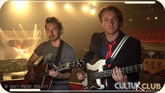 CulturClub n'a pas perdu la trace des Fiction Plane, trio rock dont notre site suit les envolées depuis leur concert du Nouveau Casino, en septembre 2007. Depuis, il y a eu des triomphes à l'Elysée Montmartre de Paris, au Paradiso d'Amsterdam et dans beaucoup d'autres scènes et festivals mythiques de la scène rock. Pour leur troisième album Sparks, paru en mai chez Roadrunner Records, Joe Sumner (chant et basse), Seton Daunt (guitare) et Pete Wilhoit (batterie) sillonnent de nouveau l'Europe avec la ferme intention de casser la baraque. Le concert de la Cigale donné le lundi 4 octobre dernier en a été un exemple irréfutable. C'est dans les coulisses de ce spectacle mémorable durant lesquels les nouveaux morceaux de Fiction Plane ont révélé tout leur potentiel à grand coup de jams musclés et de performances vocales survoltées, que nous avons retrouvé Joe et Seton pour une mini-session acoustique exclusive, dont nous vous dévoilons aujourd'hui un extrait, le nouveau single 'Out Of My Face' assorti à sa performance live donnée le même jour. Attention, ça déménage ! ![]()
