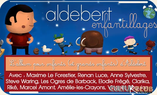 - il était une fois aldebert -Aldebert est de ces artistes français qui se sont fait connaître par la scène. De bars en petites salles, ses concerts se sont rodés et son public fidélisé. Du Doubs dont il est originaire, il fabrique des chansons qu'il parsème d’allusions à sa région. Celles-ci sont souvent alcoolisée d’ailleurs ! Ancien étudiant en photographie, il sait capter la vie sous tous les angles, poser un regard sur ce qui fait notre quotidien. Dans la veine des Bénabar, Jamait ou Renan Luce, Aldebert appartient à une génération de chanteurs élevés ou inspirés par Brel ou Brassens et qui donnent un nouvel élan à la musique française. Sur scène, ses interprétations sont servies par une présence et une énergie phénoménales. Accompagné d’une joyeuse équipe de musiciens, ses spectacle sont toujours une fête et le public apprécie cette bonne humeur ainsi que l’ambiance potache qui règnent sur scène. - chansons pour bouts d'choux -Enfantillages est un recueil de seize chansons pour lesquelles une dizaine d’artistes sont venus rejoindre Aldebert autour du micro. Après quatre albums studio et un live, l'artiste avait annoncé, il y a plusieurs mois, qu'il préparait un album pour enfants. Le "bébé" est enfin là, il se porte bien, merci. Les textes de ce disque "hors-série" évoquent tout aussi bien les peurs et les frustrations enfantines, que l’émerveillement avec lequel nos chérubins voient la vie. Au milieu de ces seize chansons à destination des petits bouts de choux, deux d’entre elles font intervenir directement l’adulte : Les Questions, un hymne second degré, pour les parents à court de réponses aux «pourquoi» et «comment» de leur progéniture. Aldebert y oscille entre le tendre agacement, l’incongruité des questions et la réaction exaspérée d’un parent déconcerté. Pour répondre à la délicate mais inévitable question «comment fait-on les bébés?», Aldebert a choisi un dialogue entre une grand-mère et son petit-fils. Le texte poétique et délicat est servi par la voix d’Anne Sylvestre ; un duo baptisé Pas Plus Compliqué, dont émane respect et bienveillance. Tout comme dans ses albums précédents, l’écriture d’Aldebert est tour à tour drôle, émouvante, irrésistible. Sa plume touche juste, les phrases sont ciselées, le texte est percutant. - Mélange de genres -Ce qui surprend à l’écoute d’Enfantillages c’est la diversité des choix musicaux. Il n’y a pas une ligne directrice, un style dominant. On y trouve tout aussi bien du reggae, du métal, du rock, de la pop ou bien encore une berceuse. Le passage d’un style à un autre ne heurte pas l’oreille : on tourne une page nouvelle à chaque nouvelle plage musicale. Une seule certitude, cet album est aussi remuant qu’Aldebert peut l’être sur scène. Mais la diversité est à noter également dans le choix des artistes invités. Aldebert à réuni des interprètes de plusieurs générations. Le mélange de leurs univers respectifs, de leurs styles musicaux et de leurs timbres vocaux, tend à satisfaire les gouts les plus divers. Parmi ceux qui ont bercé notre enfance : Marcel Amont, Steve Waring et Anne Sylvestre. Sans oublier Maxime Le Forestier, qui complète la liste des incontournables de la chanson française. Enfin, la jeune génération achève l’incroyable casting: Renan Luce, Riké (du groupe Sinsemilia), Elodie Frégé, Vincent Baguian, Clarika, Amélie-les-Crayons et les Ogres de Barback. Guillaume Aldebert, en véritable caméléon, se glisse dans chaque univers musical avec une facilité déconcertante. C’est un jeu auquel il s’est déjà prêté sur ces précédents albums, mais pour ceux qui découvrent l’artiste cela peut être surprenant. Sa voix et ses textes soutiennent toutes les fantaisies de cet album hétéroclite. - Pour poursuivre l’aventure Enfantillages -La tournée Enfantillages est déjà sur les routes. Elle passera par Paris les 6 et 7 décembre 2008 à l’Alhambra et, spectacle pour enfant oblige, les horaires seront adaptés sur certaines dates. Entouré d’une équipe de musiciens plus réduite qu’à l’accoutumée, Aldebert présente, en plus d’Enfantillages, quelques chansons des précédents albums, toutes en rapport avec le thème de l’enfance. En collaboration avec Renaud Forestié, qui a illustré l’album, Aldebert a sorti en octobre un livre jeunesse intitulé Justine Ou Le Temps Arrêté, sorte de conte au graphisme coloré ét épuré où Justine, petite fille débordante d’activité, se laisse prendre par le temps, jusqu’au jour où celui-ci s’arrête… Cette première collaboration entre l’illustrateur et le parolier offre au tout jeune public une histoire originale. Mais il n'y a de plus grand enfant que celui qui sait les faire rêver. n'est-ce pas Mister Aldebert ?